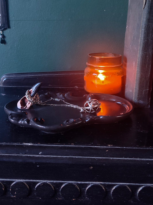 Ornate trinket tray with crow skull ring holder